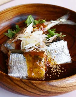 旬秋刀魚のさっと煮、梅酒味噌がけ |